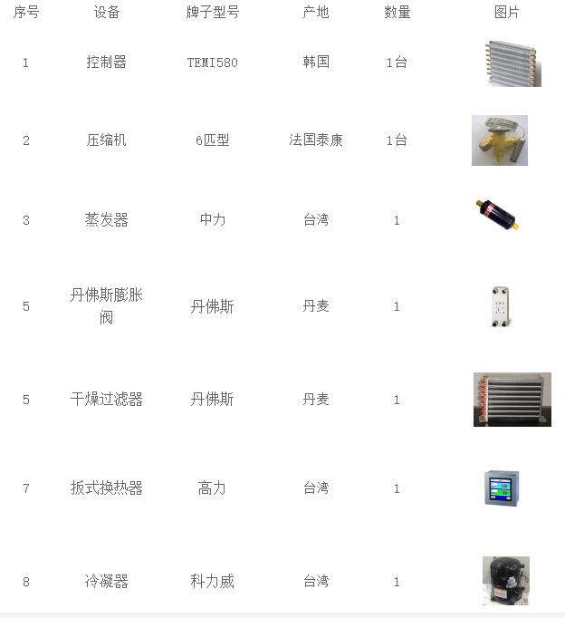 2.1、压缩机:制冷系统的核心是压缩机,此方案我们采用法国泰康全封闭压缩机,组成一套制冷系统,以保证工作室的降温要求。制冷系统包含一个高压制冷循环和一个低压制冷循环,其连接容器为蒸发器,蒸发冷凝器的功能为将低压循环的蒸发器作为高压循环的冷凝器之用。